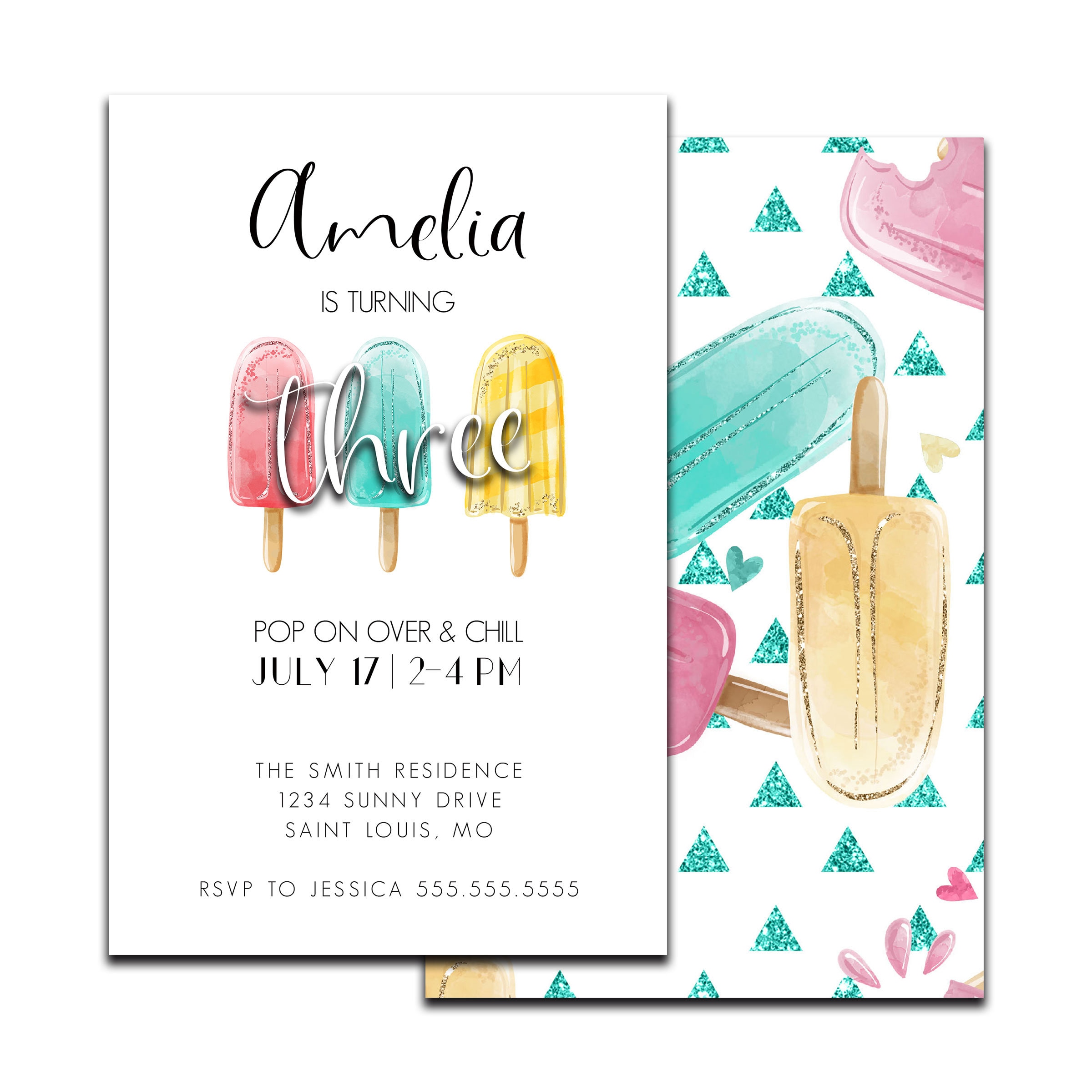 Does someone special have a summer birthday coming up? Invite your guest over to "chill" and celebrate with this fun popsicle invitation. Looking for a DIY invitation? Simply purchase the digital invitation and you will receive a high quality JPEG & PDF image which you can print yourself or send to your local printer for printing. Want that one stop shop... We have that too! We offer printed invites with envelopes, simply select the quantity you are needing and we will design, print, & ship your item to you.